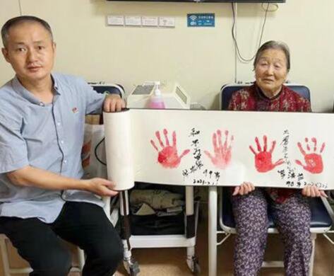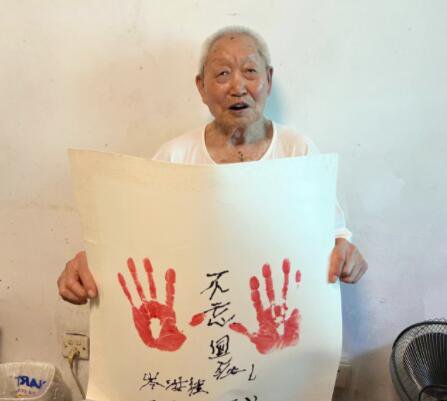 李臣星為兄妹倆采集了口述史料,還為兩位白叟留下了紅手印,岑洪桂在卡紙上寫下了「勿忘國恥」,在手卷上寫下了「平和萬歲」,兄妹倆的紅手印和相關(guān)留存,都會(huì)在儀征紅館展現(xiàn),讓更多的人記住日軍侵華前史,珍惜今日來之不易的美好日子。